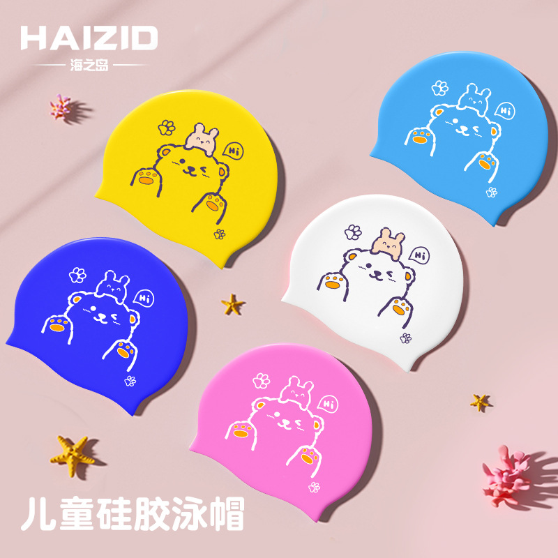 現物卸売り子供用水泳帽漫画シリコン帽子男女共通のかわいいファッション快適な水泳帽