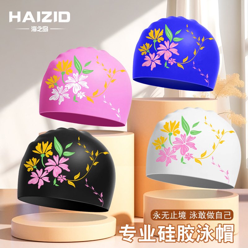 大人用シリコン水泳帽防水快適男女通用高弾性無首プリント水泳帽現物卸売り