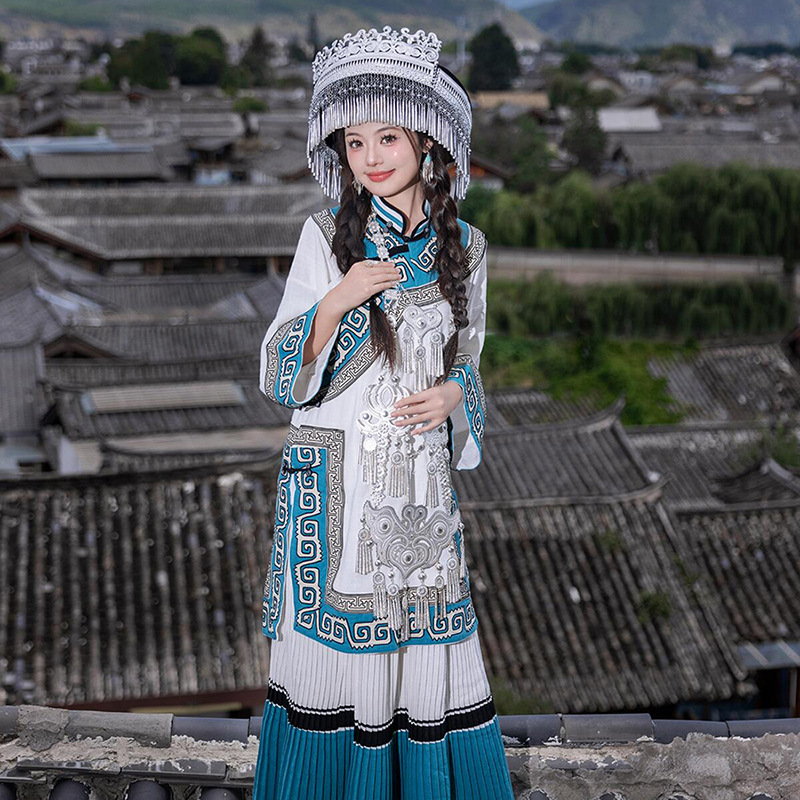 雲南麗江彝族少数民族衣装重工業綿とリネンのスーツ新しいミャオ族少女旅行写真撮影服
