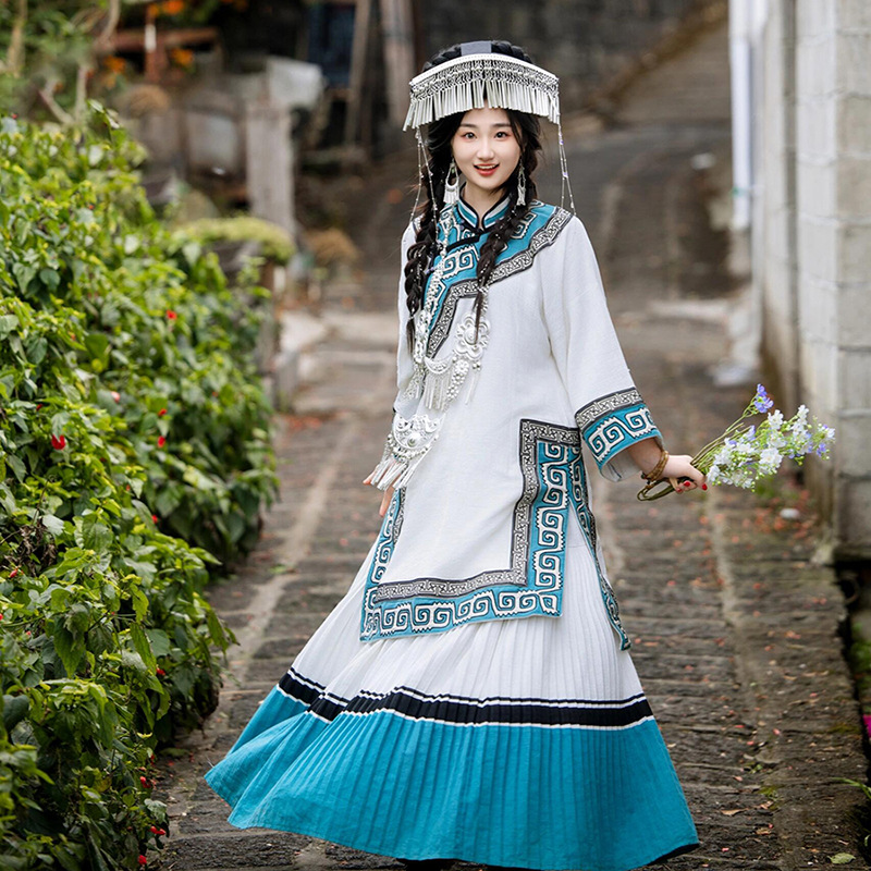 雲南大理麗江写真撮影衣装エスニックエキゾチックスタイル彝族服旅行国民風プリントスーツ