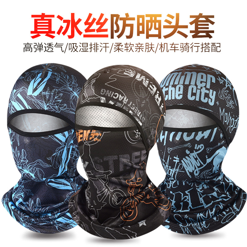 男性と女性のための夏の日焼け止めフード、屋外サイクリングオートバイヘルメット、フルフェイスフード、アイスシルクサイクリング防風マスク