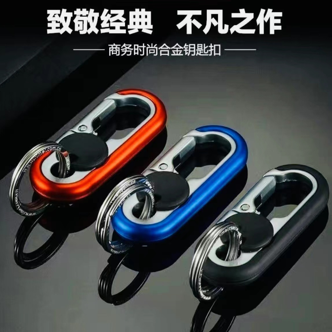 新しいダブルリングキーチェーンペンダントギフトメンズカーキーホルダー金属ウエストハンギングビジネスキーホルダーファッション
