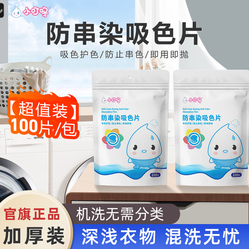 色移り防止吸収シート、色移り防止、吸収・色保護、すぐに使える使い捨て、100枚入、1パック、ファミリーパック、横型