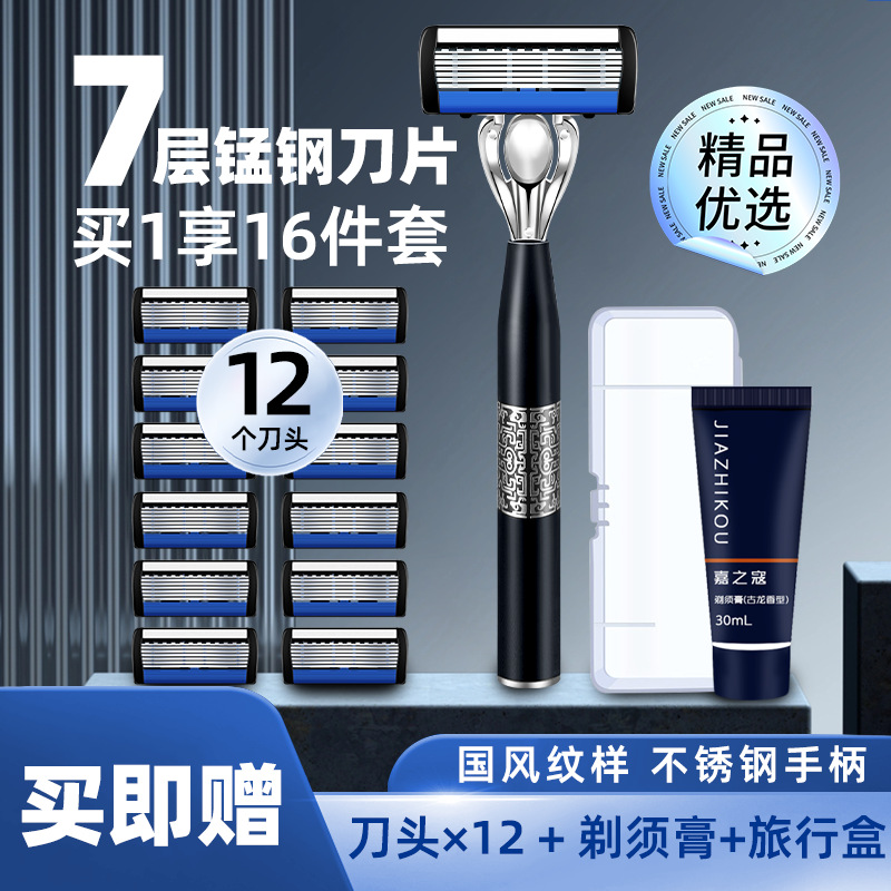Z [衝撃の到着] 中国風 7 層手動シェーバー 12 カッターヘッドと金属ハンドル付き