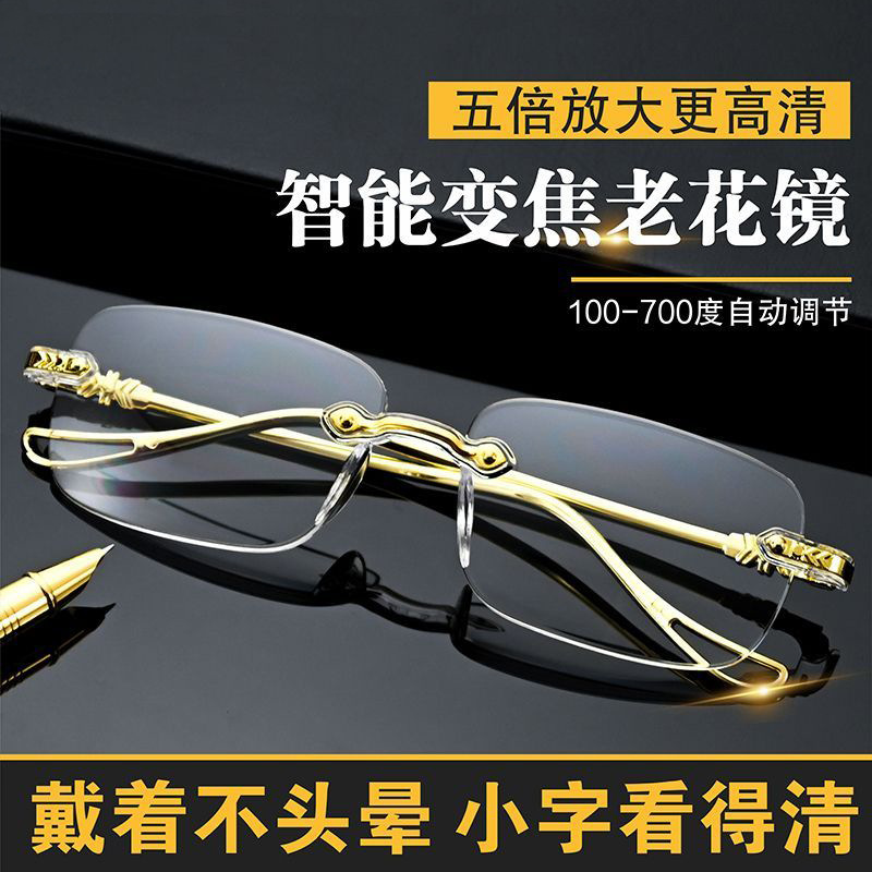 【アップグレードモデル2組】老眼鏡 スマートズーム ブルーライトカット 高精細老眼鏡 リムレス老眼鏡