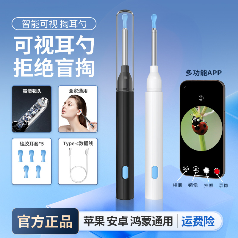 生放送ビデオと同じスタイルの2025年新製品、蓋付き、写真やビデオ撮影が可能、家族全員で使用できるビジュアルイヤースクープ