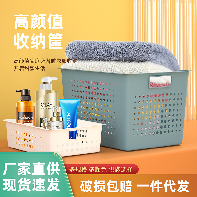 デスクトップ収納バスケット家庭用プラスチックキッチン雑貨化粧品収納バスケット幼稚園玩具収納ケースバスケット