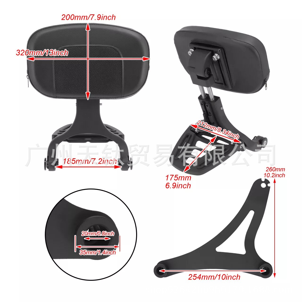 オートバイ背もたれサイシーバー背もたれパッド乗客用vt 750c2b 2010-2017
