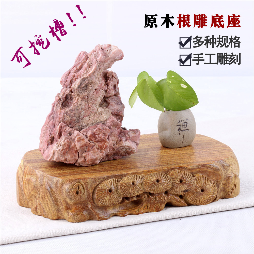 実木彫刻奇石楕円台座玉頭置物仏像花盆栽根彫刻木パレット棚は溝を掘ることができます。