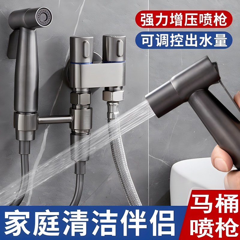クロスボーダー便器スプレーガンセット伴侶一進二出ダブル用角弁婦洗器ノズル増圧トイレ洗浄器