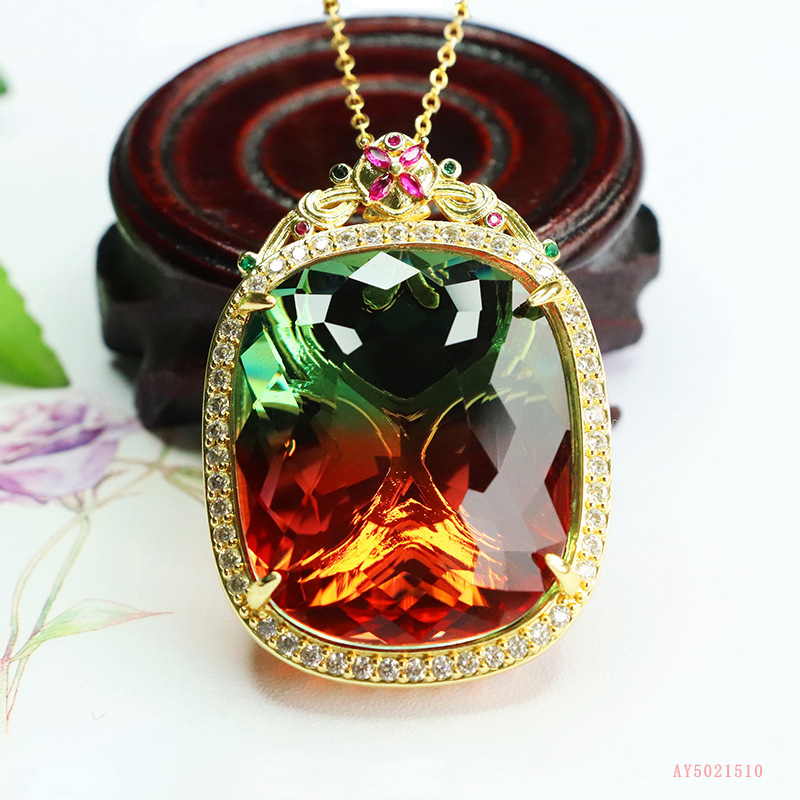 愛钰ファッションアクセサリー自慢ガラスペンダントスイカ碧璽ネックレス直播起爆卸売りAY5021510