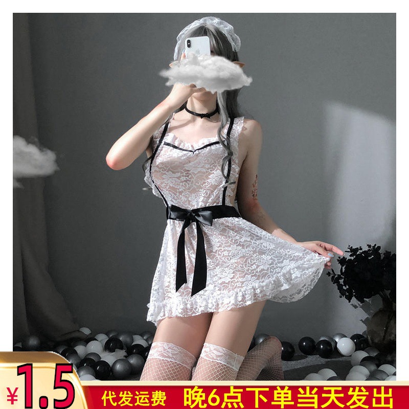 速盛セクシーランジェリー セクシーな透ける小胸レースクロスバックレスナイトウェア メイド服セット 1248
