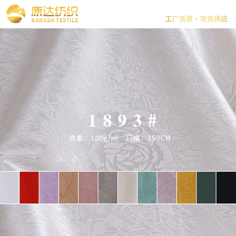 2024新型模造シルクジャカード生地牡丹花暗紋弾力色丁布サテンチャイナドレス漢服生地