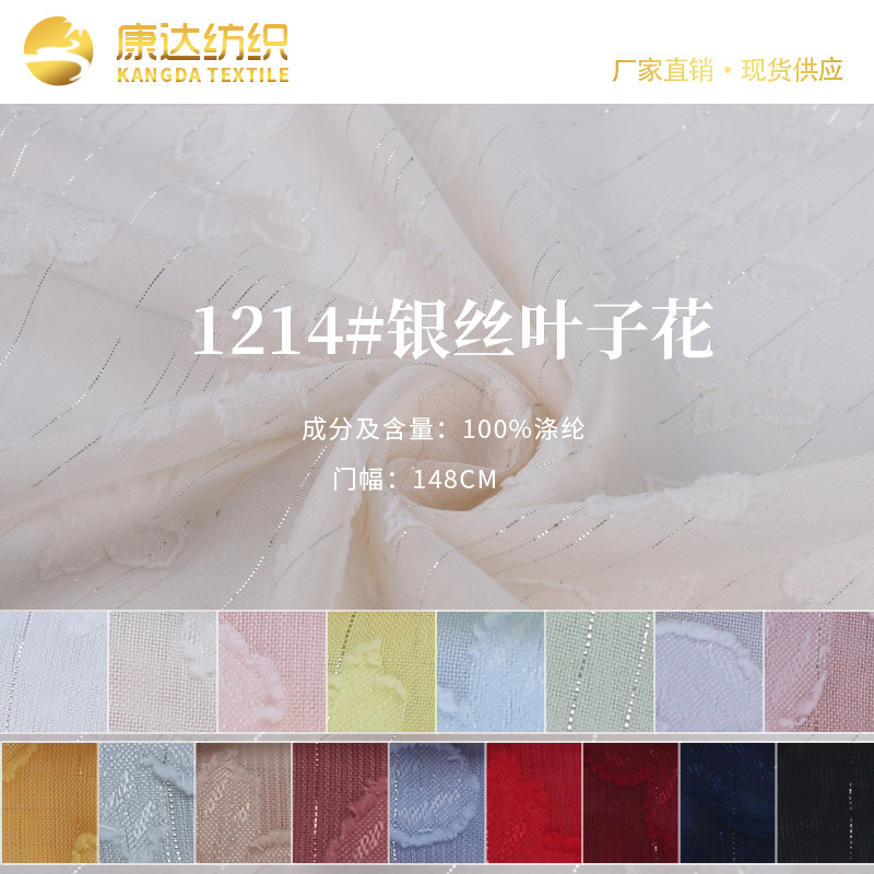 銀糸の木の葉の小さい花の切り花のジャカードの生地の全ポリエステルのシフォンの生地の春夏のワンピースのドレスの生地