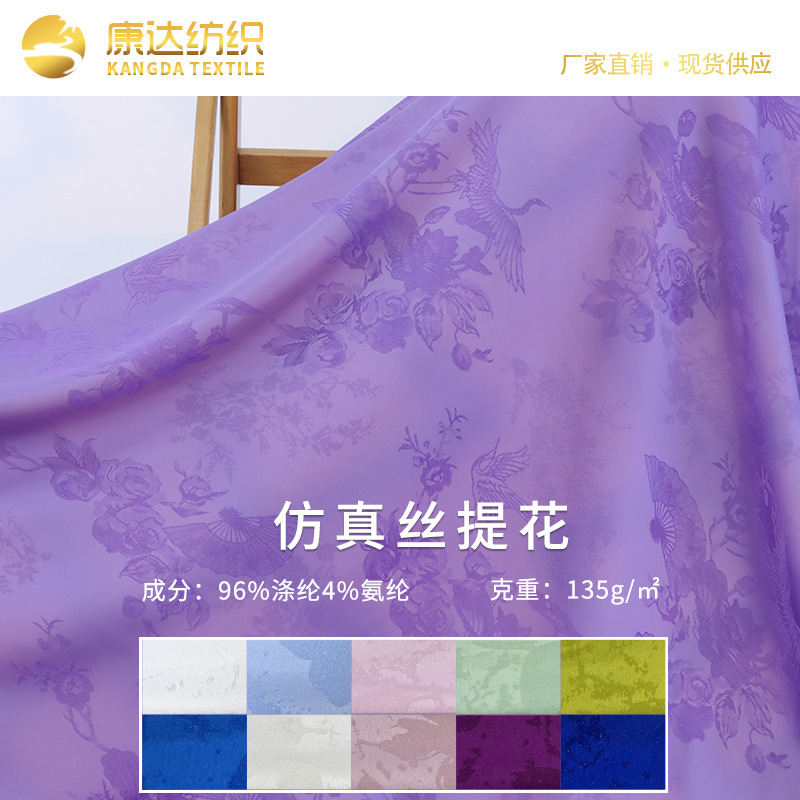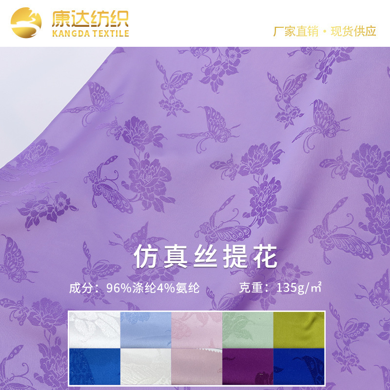 模造シルク蝶ジャカード布弾力色丁女装生地ワンピース漢服模造化粧花ジャカード布