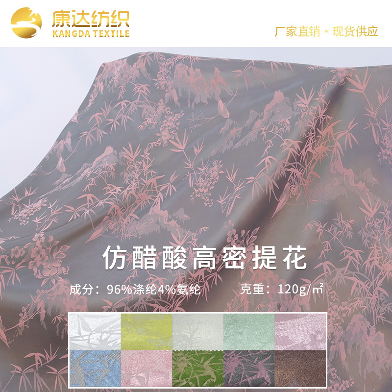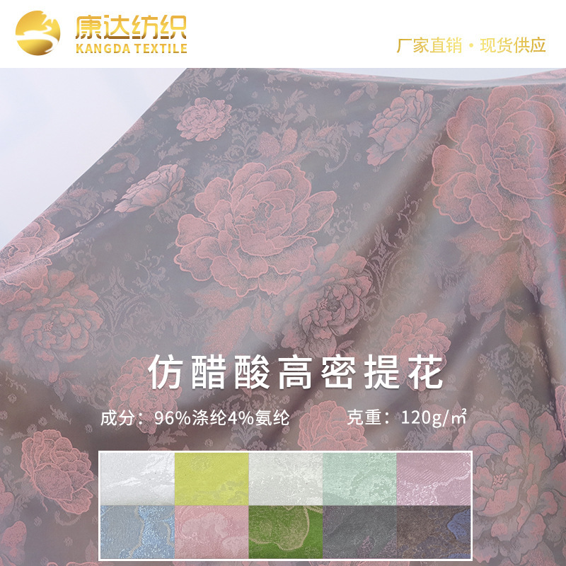 現品ジャカード生地は酢酸高密ジャカードバラジャカード現代婦人服のチャイナドレスのパジャマ生地をまねて卸売りします。