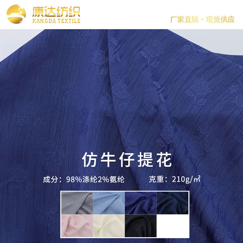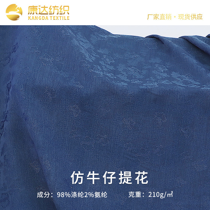 現物の春夏ポリエステルアンモニアはデニムの布帛ジャカードの布地をまねています。
