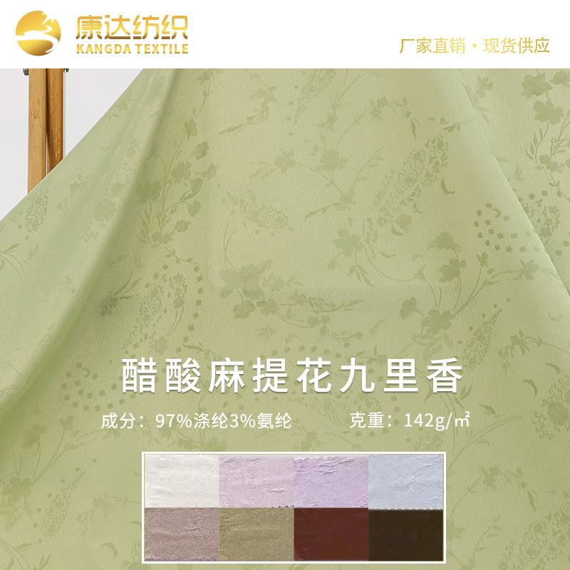 現物は酢酸麻九里香ジャカード布142gのポリエステルアンモニアをまねて酢酸生地の気質の婦人服のワンピースの布地をまねます。