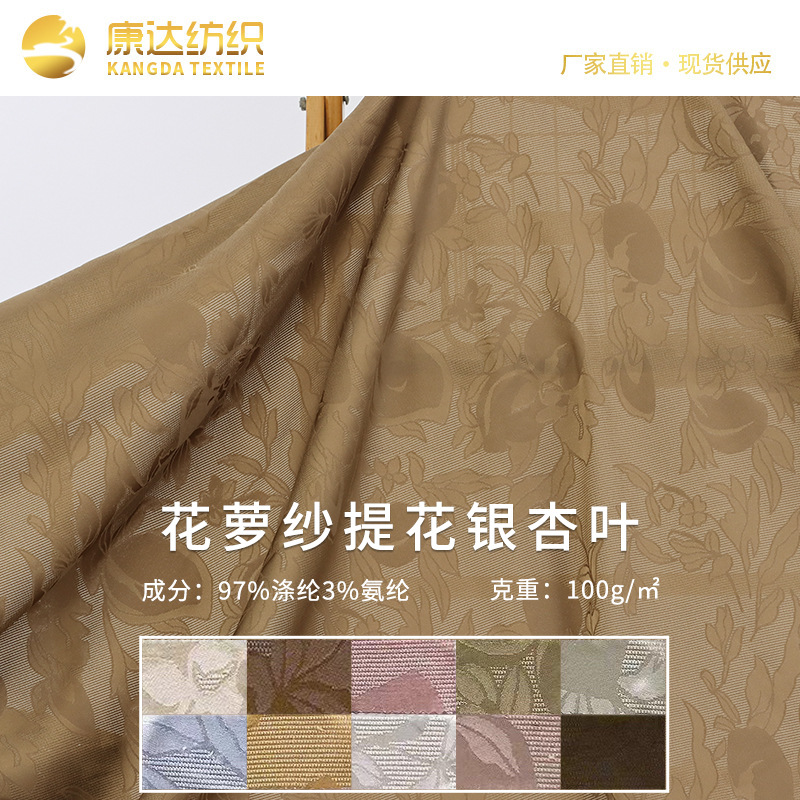 花羅香雲紗ジャカードイチョウ葉春夏弾力婦人服チャイナドレス中国風漢服生地を供給する