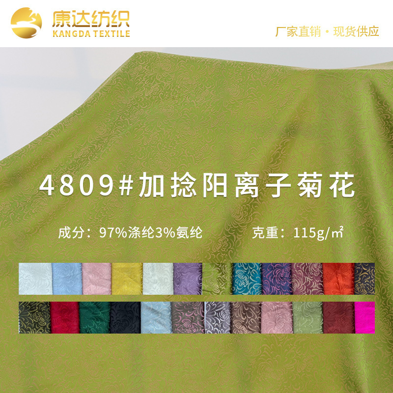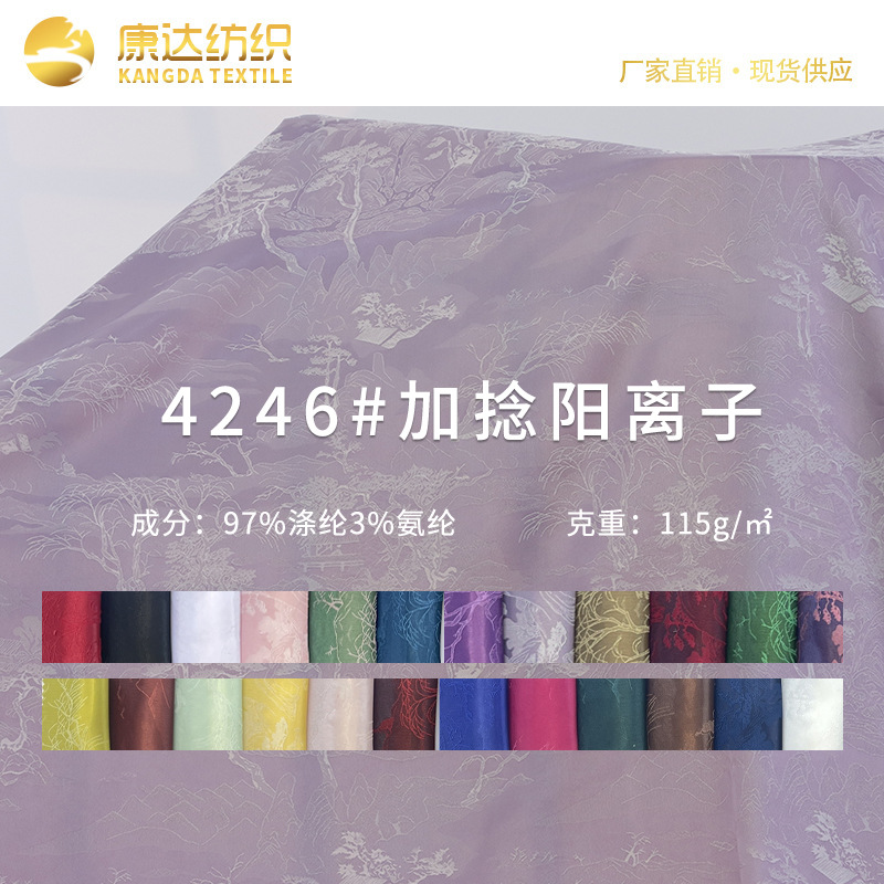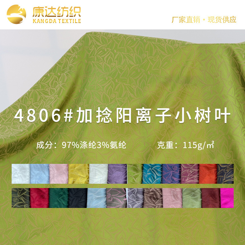 現物加撚陽イオンジャカード生地サテン小木の葉ジャカード中国式漢服チャイナドレス生地卸売り