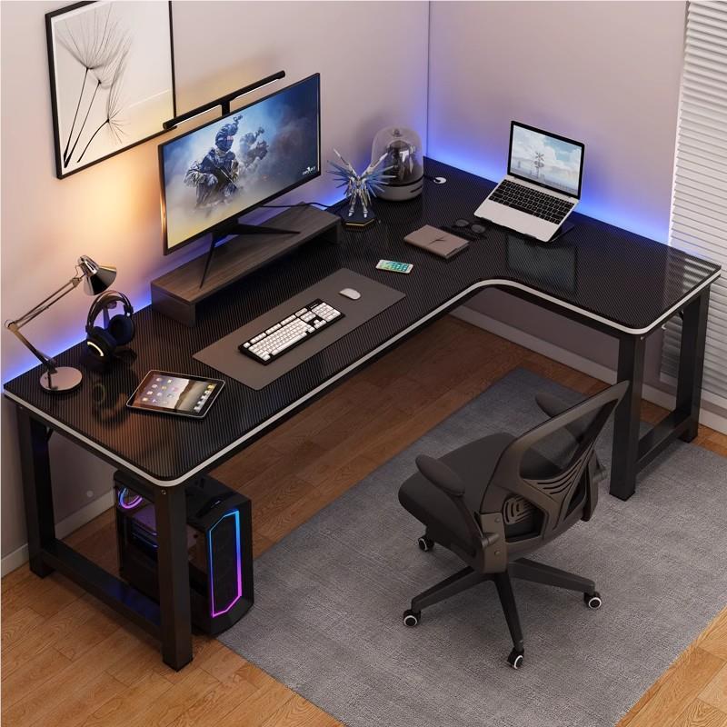コーナーゲーミングテーブルコンピュータテーブルデスクトップホームダブルデスク本棚テーブル寝室コーナーテーブルライティングデスク