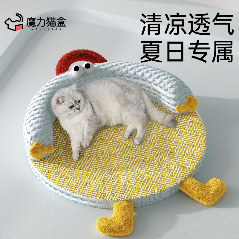 オールシーズン対応のキャットネスト、アイスビーン籐マット、取り外して洗える夏用冷却キャットソファペットマット