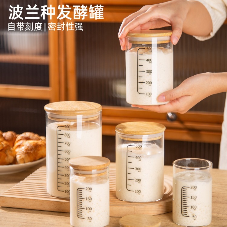 発酵培養皿 ルボンポーランド種 天然酵母発酵タンク 目盛り付き 密封ガラス瓶 ベーキングツール
