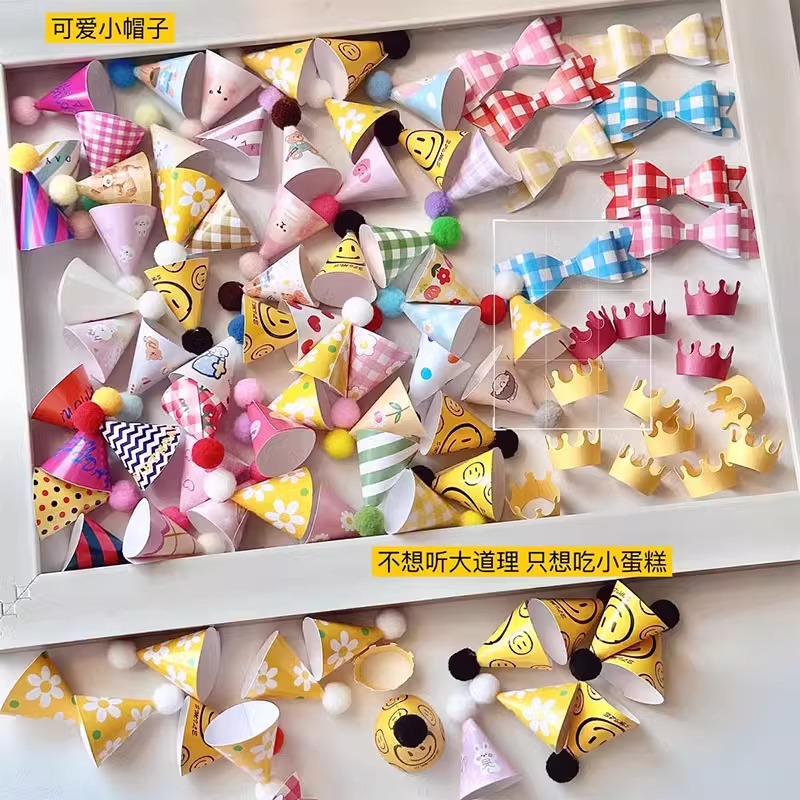 韓国毛玉小さな帽子ケーキデコレーションオーナメントインレトロ漫画スマイリーフェイスミニ誕生日帽子ベーキングプラグインm