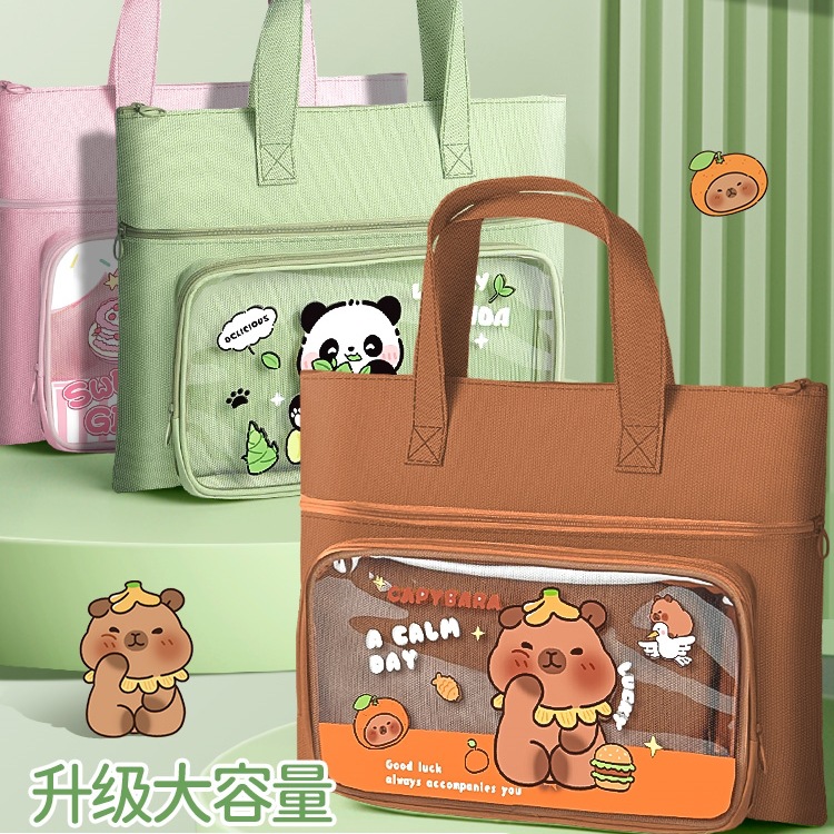 小学生のハンドバッグ、ブックバッグ、小学生のキャンバスバッグ、厚みのある男の子と女の子の宿題ファイルバッグ、塾の補習
