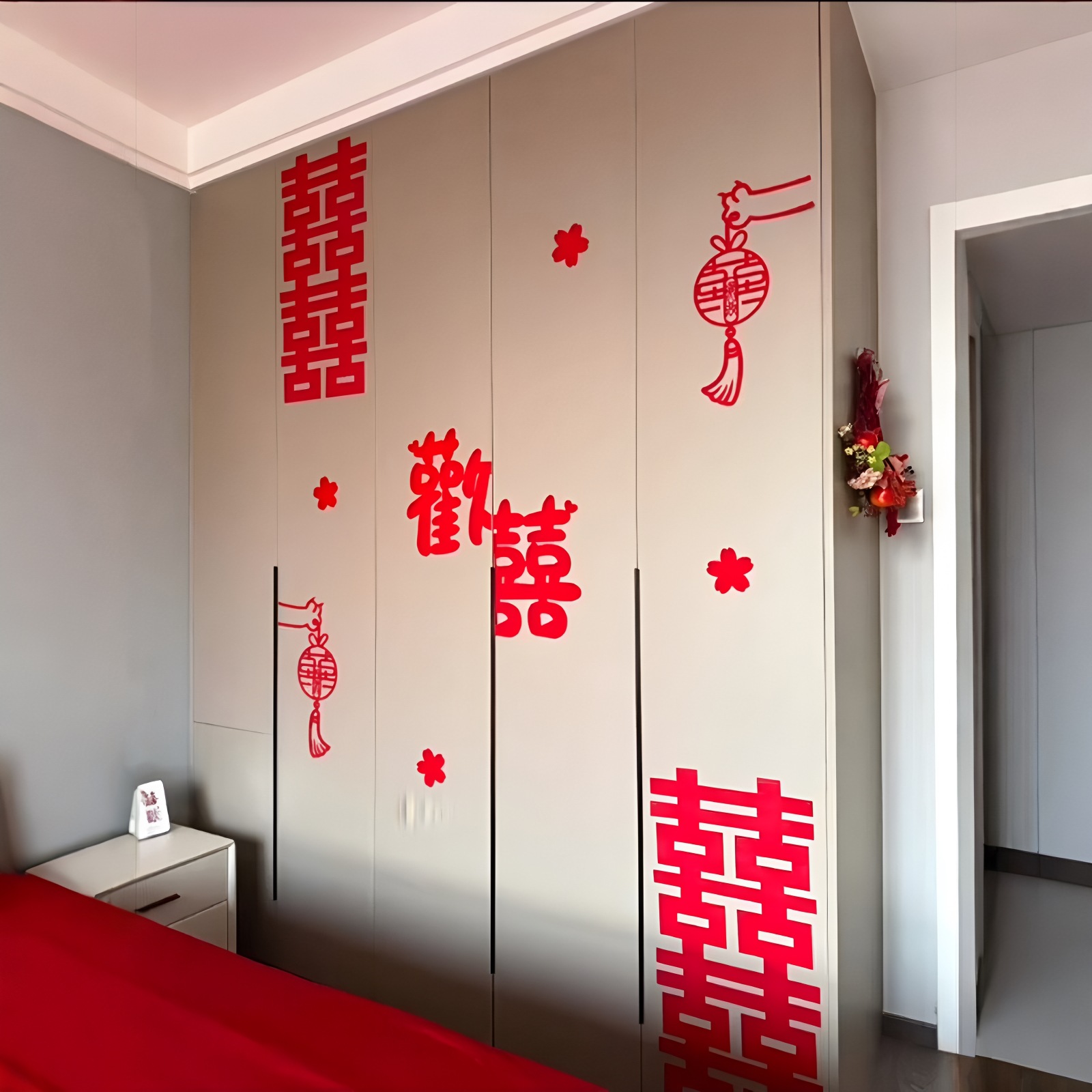結婚式の部屋のレイアウトセットワードローブ装飾結婚式新郎の新しい家結婚式新婦の寝室のキャビネットキャビネットドアハッピーワードステッカー