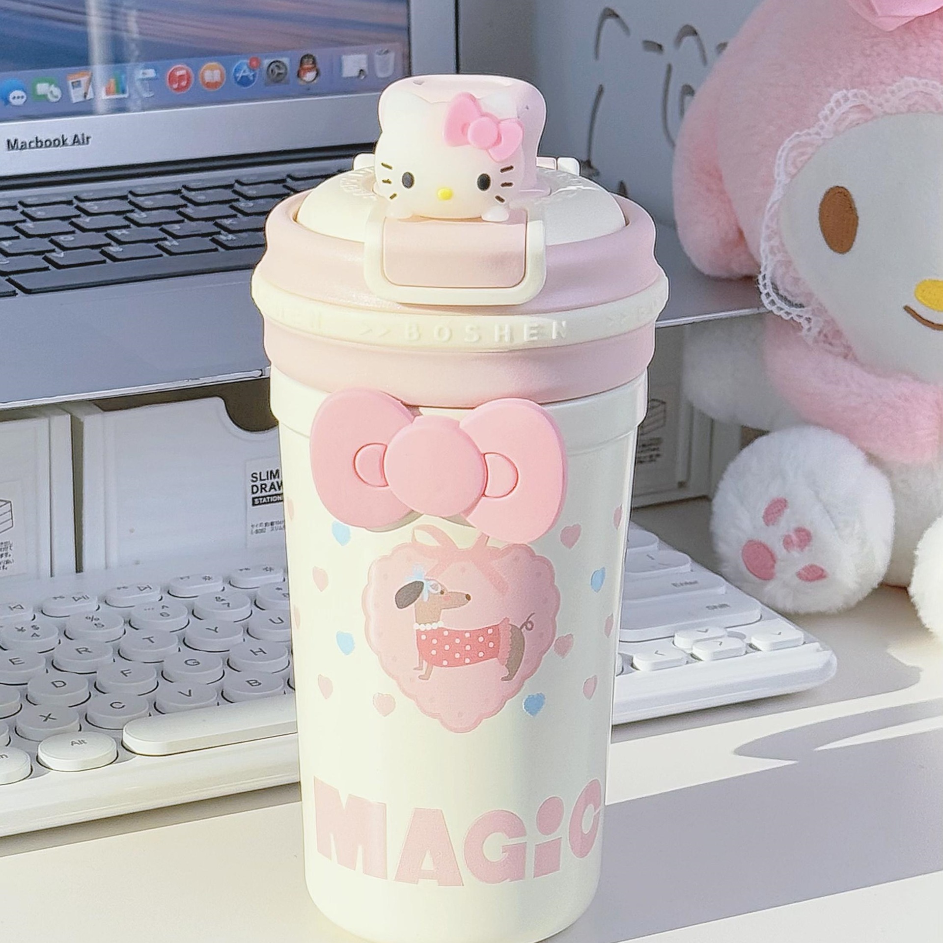 ファフフ魔法瓶カップ、ストロー付きの見栄えの良い女性用ウォーターカップ、学生インスタイルの新しいオフィスポータブルコーヒーカップ