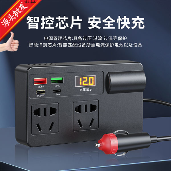 車載インバーター充電器通用12v 24v回転110v 220v多機能電源変換器は携帯電話に充電します。