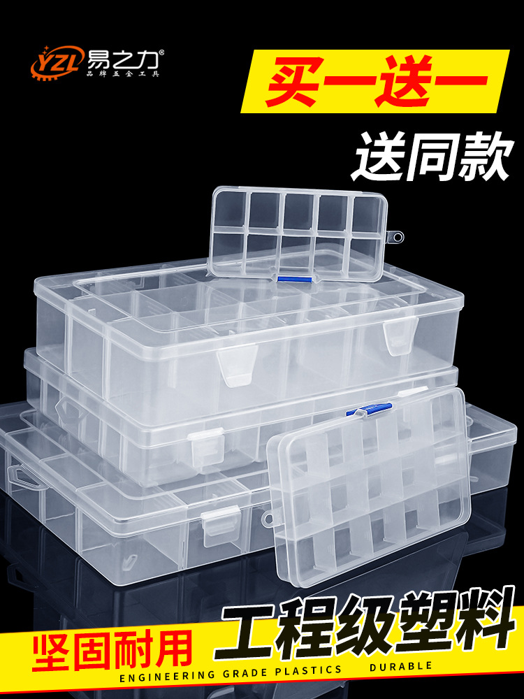 新型部品箱多格プラスチック透明工具分類箱電子部品格子蓋付き小ねじ箱