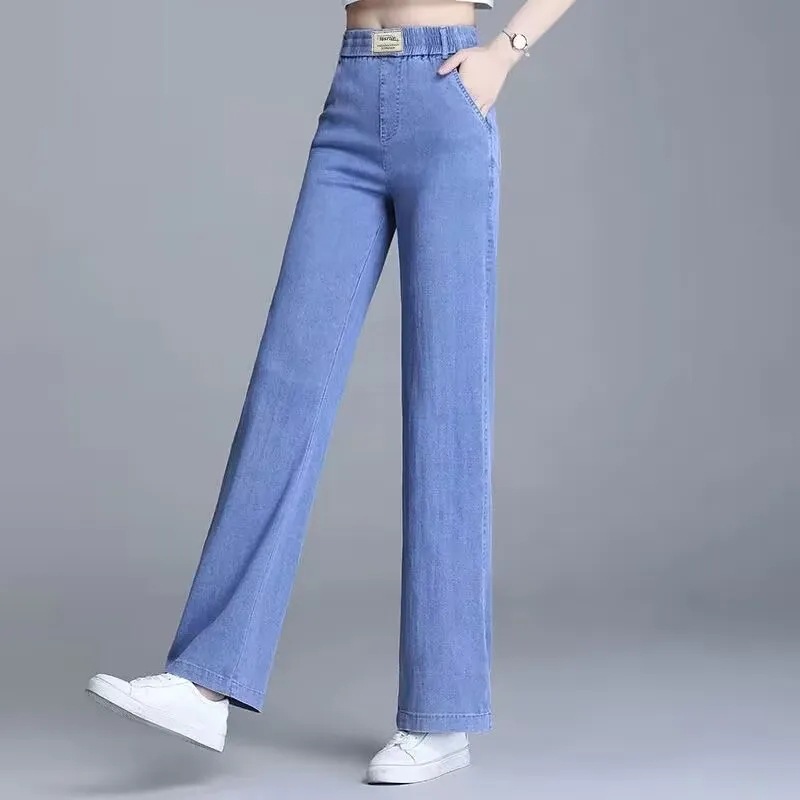 ハイウエストアイスフィールテンセルジーンズ女性の夏の新しい弾性薄いストレートルーズドレープワイドレッグパンツ
