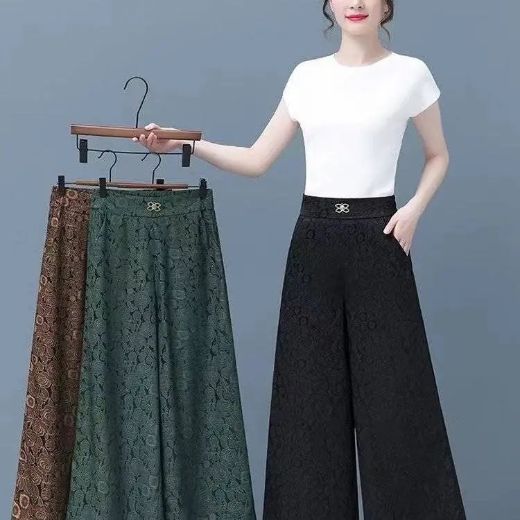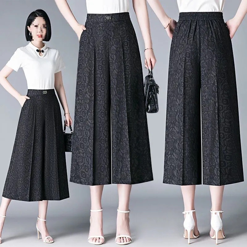 キュロット夏薄いジャカードワイドレッグパンツ 2025 ハイウエストママカジュアルパンツ西洋スタイルルーズ 9 点パンツ女性
