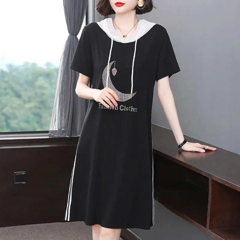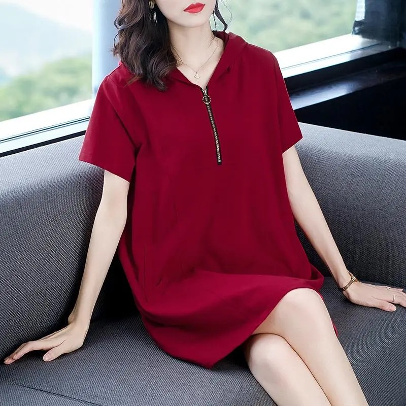太った妹がお腹を隠して痩せているワンピースの大きいサイズの女装2025夏服の新型韓国版ゆるいシャツのスカート