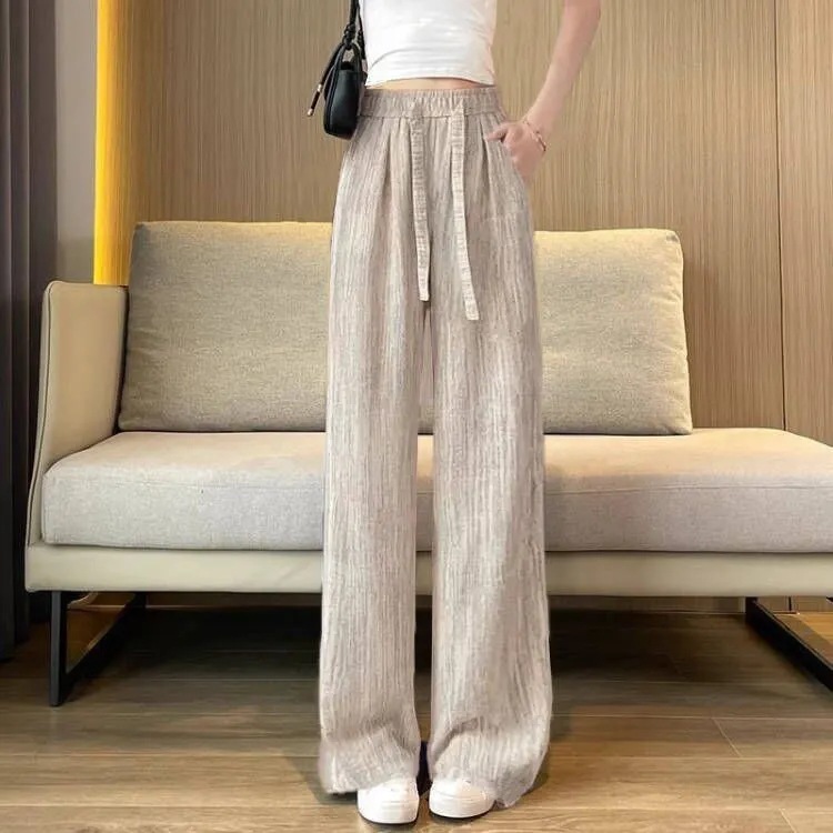 氷糸広脚ズボン女子夏2025新型高腰垂感筋理感怠惰な風がゆったりしている