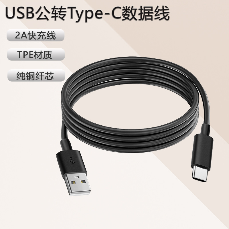 卸売りUSB変換type-cデータケーブル2a急速充電配線黒色TPE純銅4芯1メートル携帯電話充電ケーブル