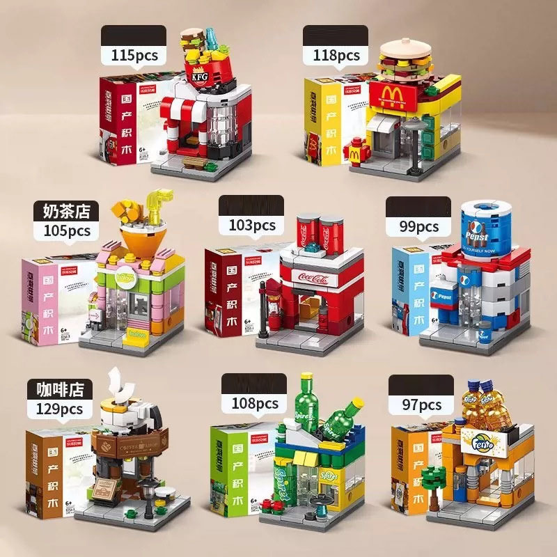 子供用の小さな粒子のさまざまなストリートシーン組み立てブロックは、レゴ組み立て都市建物モデルのおもちゃの卸売と互換性があります