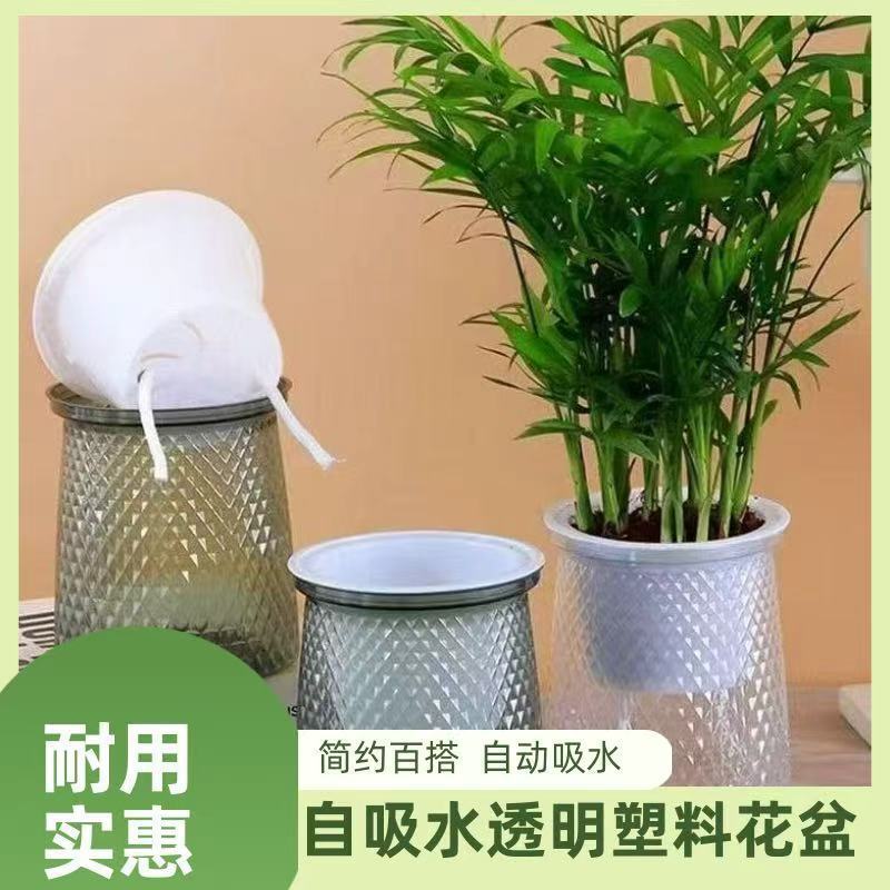 自吸式水耕栽培容器、新しい怠惰なインターネット有名人の水耕植木鉢、デスク装飾、シンプル、透明、軽い高級感