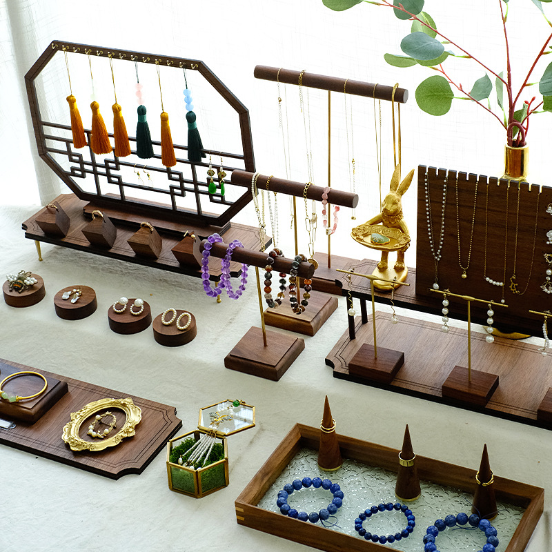 ネックレスジュエリーディスプレイイヤリング多機能写真ディスプレイクルミブレスレットジュエリーディスプレイスタンド収納ラック小道具