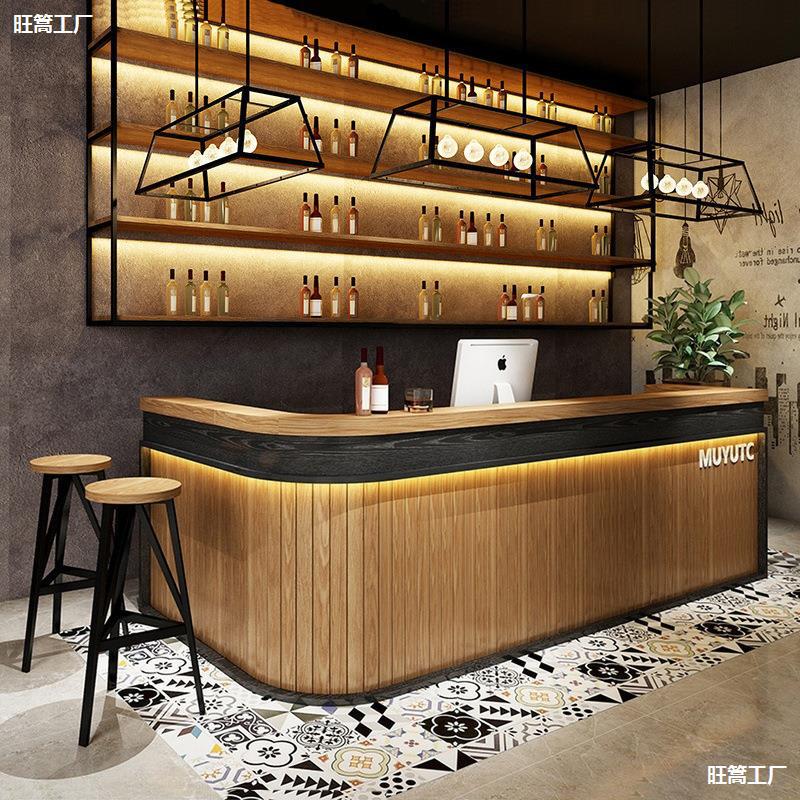 原木色前台接待台柜台超市酒吧咖啡店吧台收银台奶茶店新中式