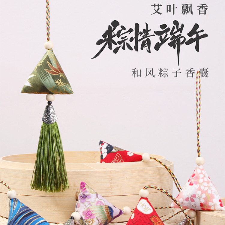 端午節団子サシェ、ポケットサシェ、ポータブルよもぎ蚊よけ三角袋、中国風ペンダント、完成品イベントギフト