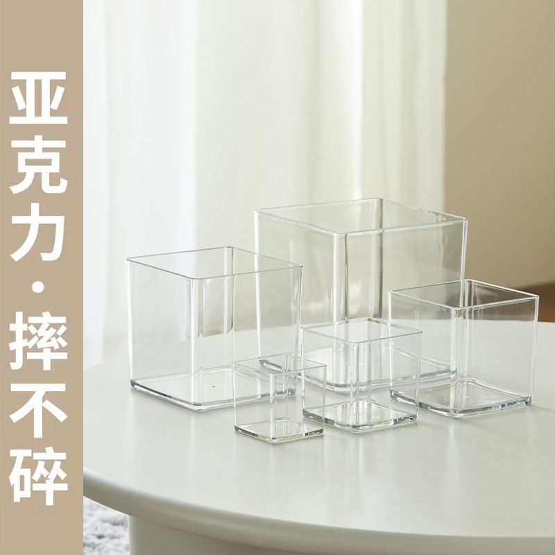 透明笔筒加厚亚克力防摔花瓶正方形水绿植郁金香多肉花盆插花方缸