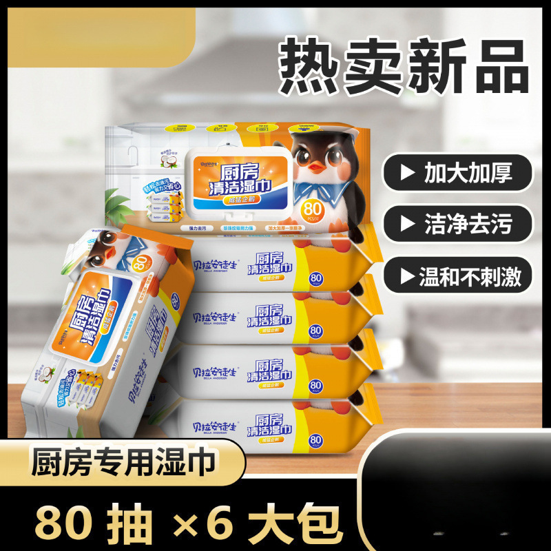 威猛企鹅巨无霸厨房清洁油污湿巾加大加厚克工厂直发吸水