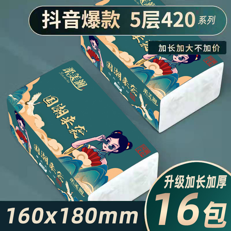 柔美澜抽纸巾国潮厂家批发整箱5层原生木浆抽纸餐巾纸6包