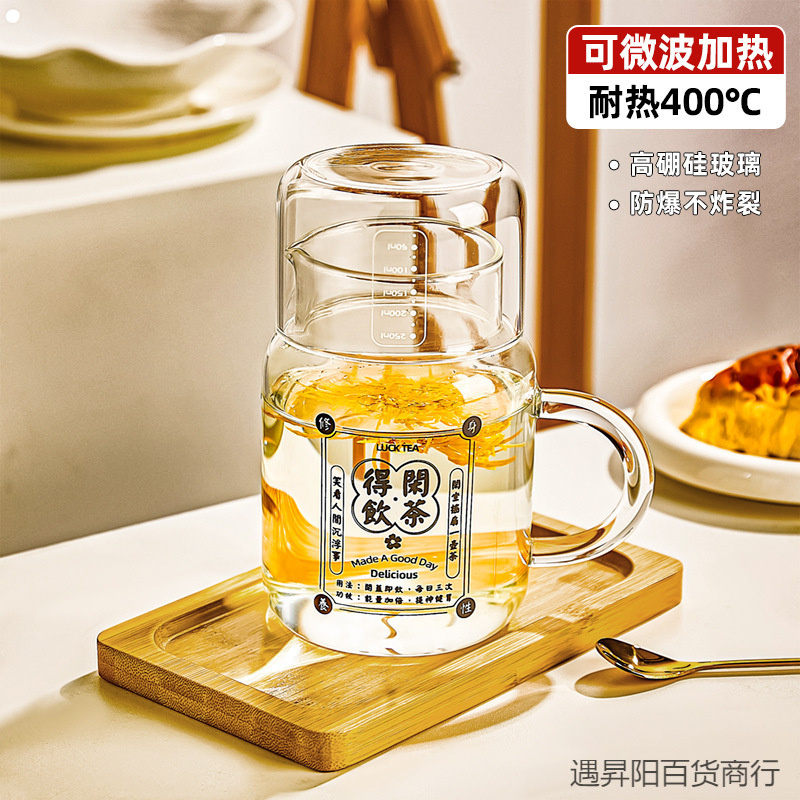 水杯耐高温泡茶杯高硼硅玻璃杯大容量800喝水杯子女带盖咖啡杯包