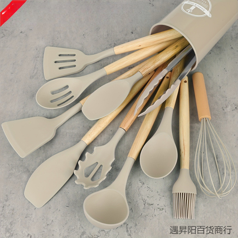 人気のホワイトカーキ収納バケツ木製ハンドルシリコンキッチン用品12点セットキッチン用品クッキングセット送料無料