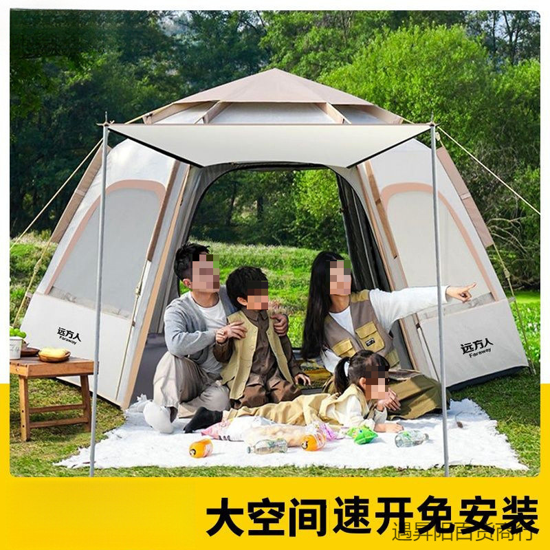 テント アウトドア キャンプ 六角形 屋外 夜泊 折りたたみ式 便利 全自動 クイックオープン 防風 日焼け防止 家族向け