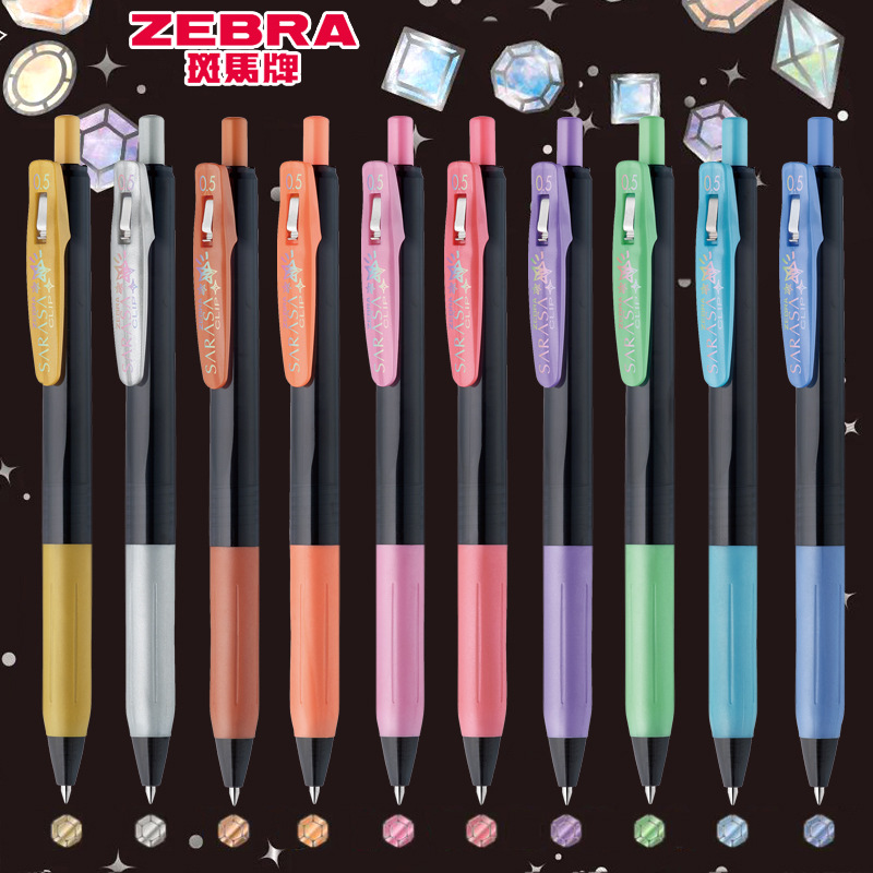 日本ゼブラjj15宝石シリーズ中性ペン新型カラーキラキラ金属色学生用0.5mm